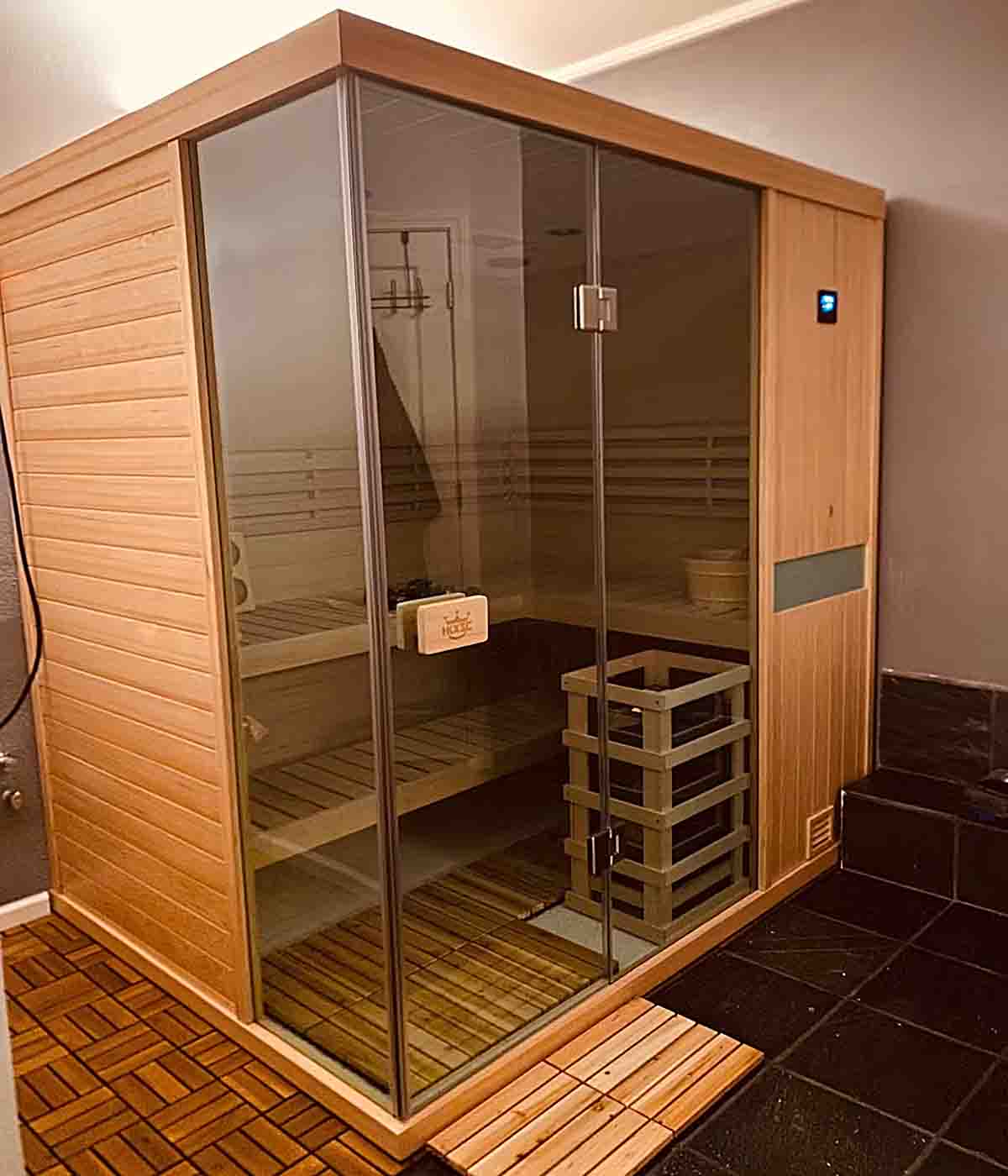 Crafted from select-grade Hemlock wood and African Mahogany for superior durability, heat resistance, and a naturally aromatic sauna experience.