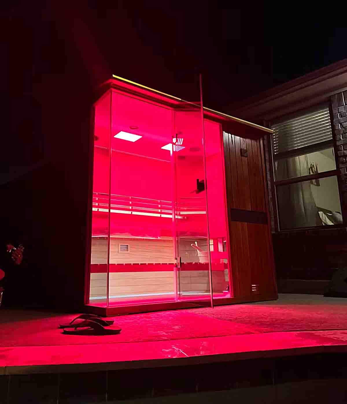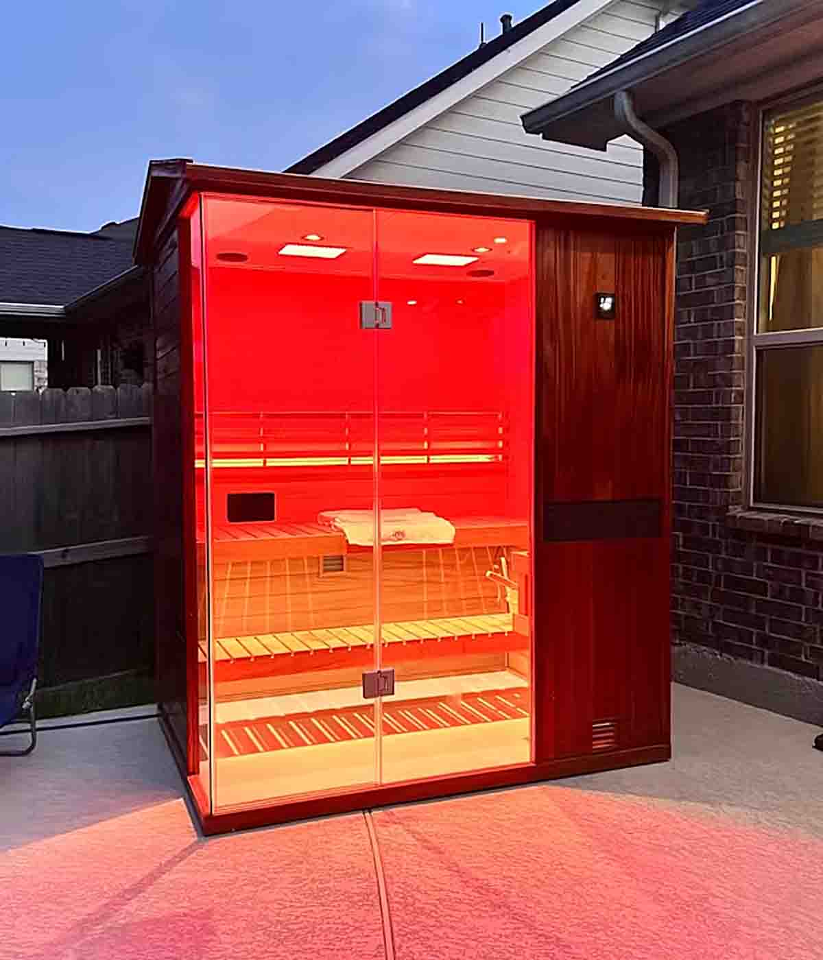 Crafted from durable hemlock or mahogany with mature, precision workmanship for long-lasting quality,our steam sauna pairs enveloping heat with negative-ion technology and targeted 660 nm red light. Negative ions help create a cleaner-feeling, easy-to-breathe environment, while 660-nm wavelengths support circulation and healthy-looking skin