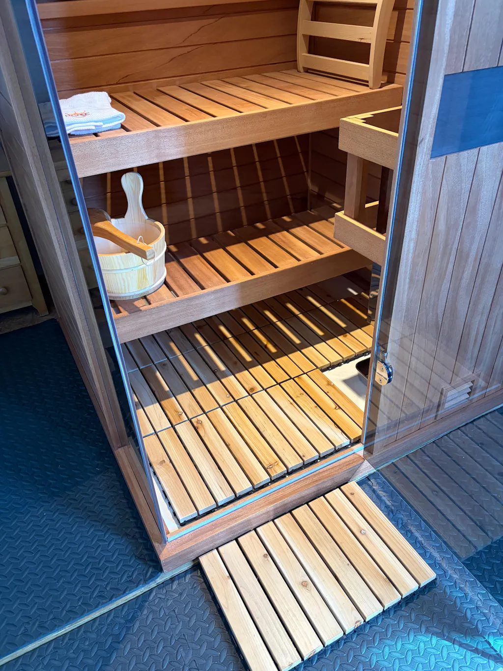 The foot mats are a great addition. We use some inside and outside the sauna door which adds comfort for the feet.